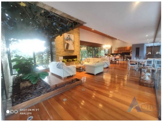 La casa tiene un área construida de 560 M2, distribuidos en 3 habitaciones; todas con baño y vestier, 1 cuarto independiente para huésped y 1 cuarto de servicio, amplio closet de lindos, cocina abierta con cubierta en granito y electrodomésticos en acero inoxidable, estudio, sala de TV, cuarto útil, terraza, jacuzzi.